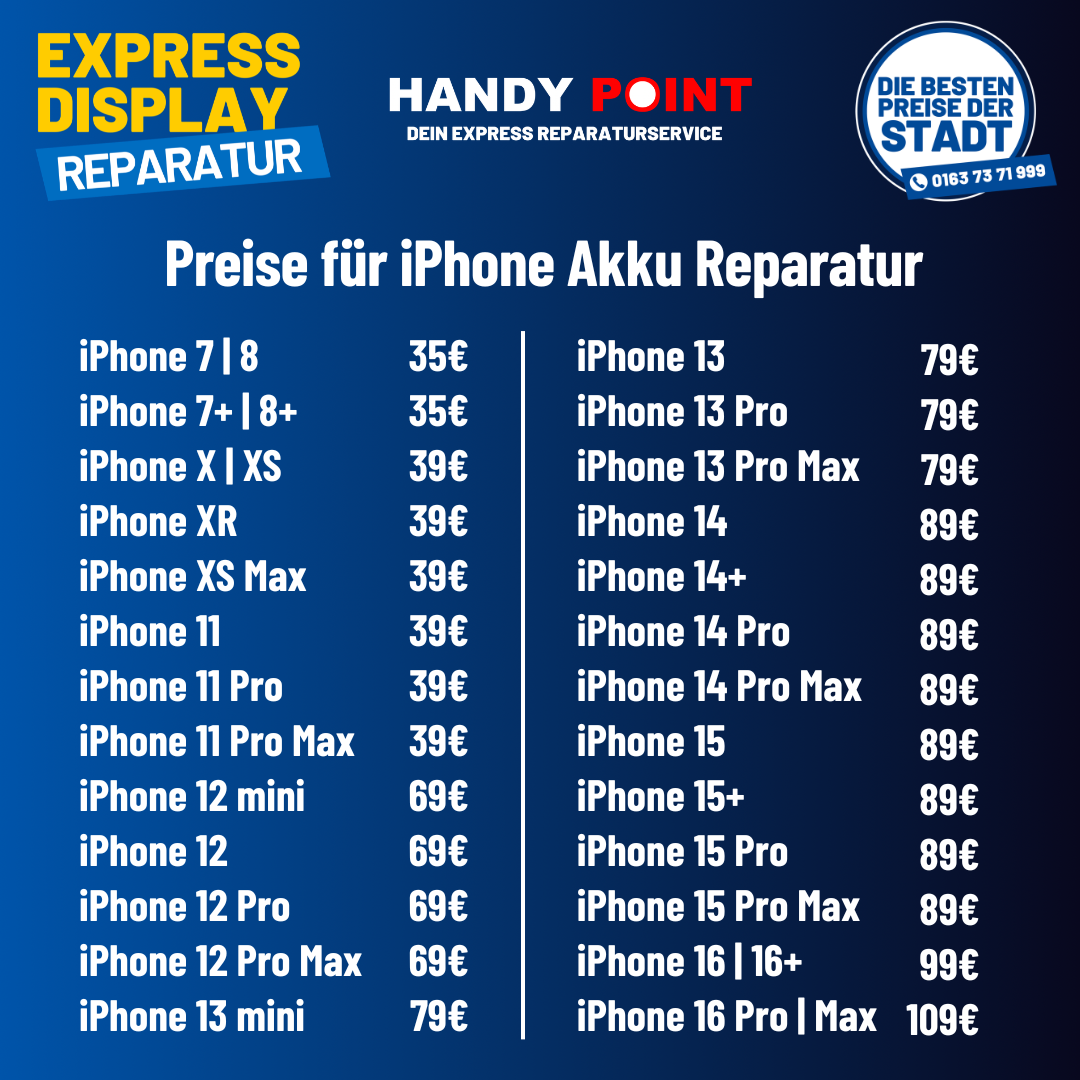Ob gesprungenes Display, schwacher Akku oder defekte Ladebuchse – bei HANDYPOINT am Duisburger Hauptbahnhof reparieren wir dein Smartphone schnell und professionell. Kein Warten auf Versand, keine versteckten Kosten. Einfach vorbeikommen und reparieren lassen!
