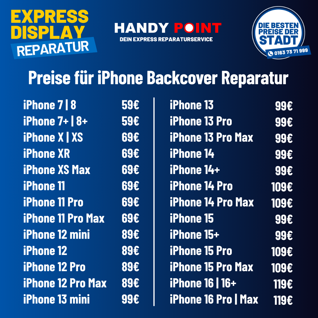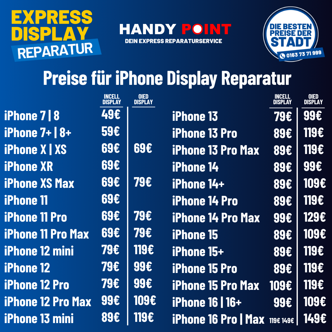 Die Preise variieren je nach Modell und Art der Reparatur. Komm einfach vorbei oder ruf uns an – wir nennen dir den genauen Preis vorab und du entscheidest, ob es sich für dich lohnt.